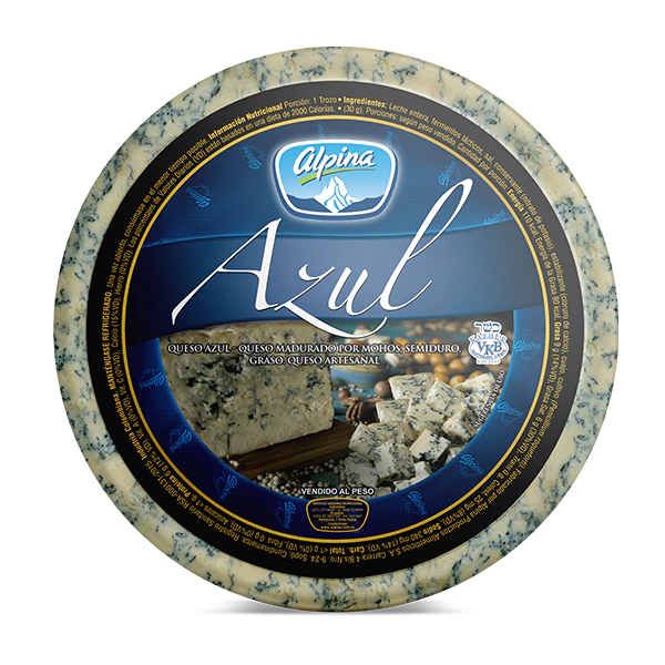 El Queso Azul de Alpina es un queso maduro con un sabor fuerte y ligeramente salado que aumenta de intensidad con el tiempo de maduración. Aporta naturalmente nutriciones como proteínas, grasas y calcio