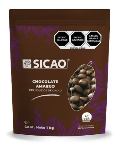 Chocolate amargo 52% cacao, (semi amargo) hecho en México, un sabor intenso a notas tostadas y muy aromático. Elaborado con cacao de origen sustentable.